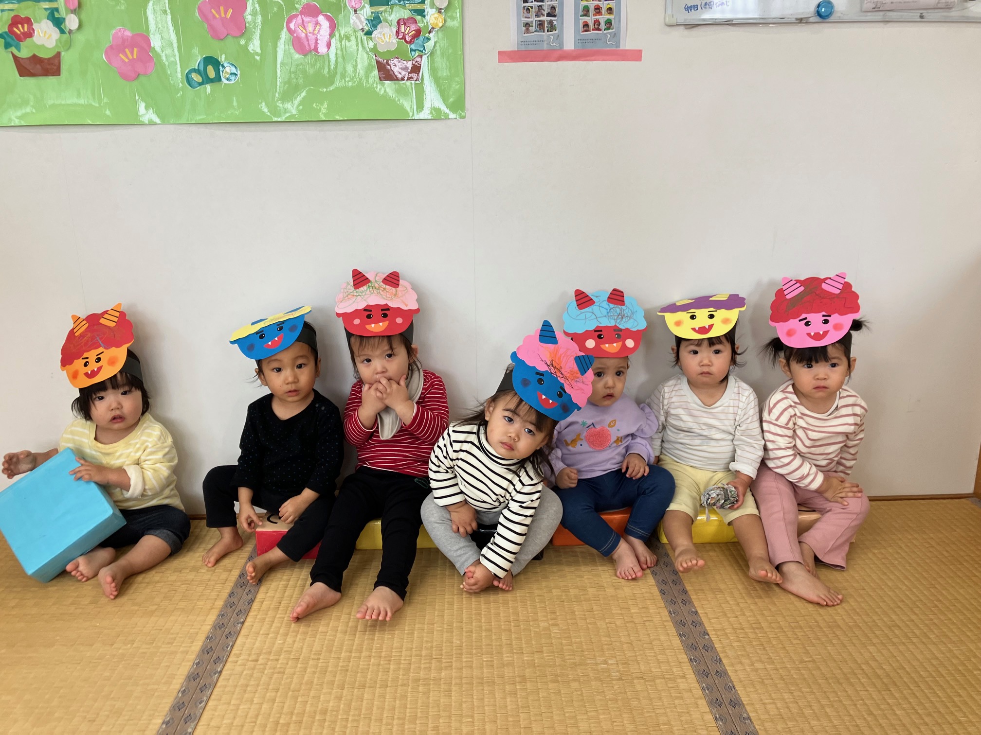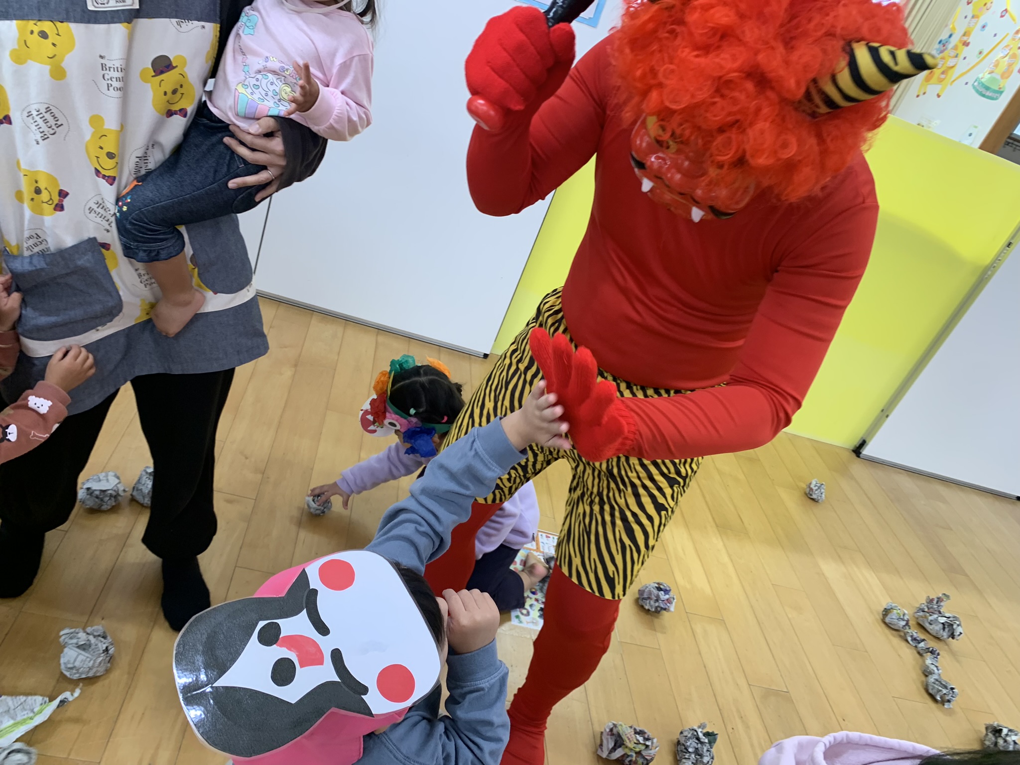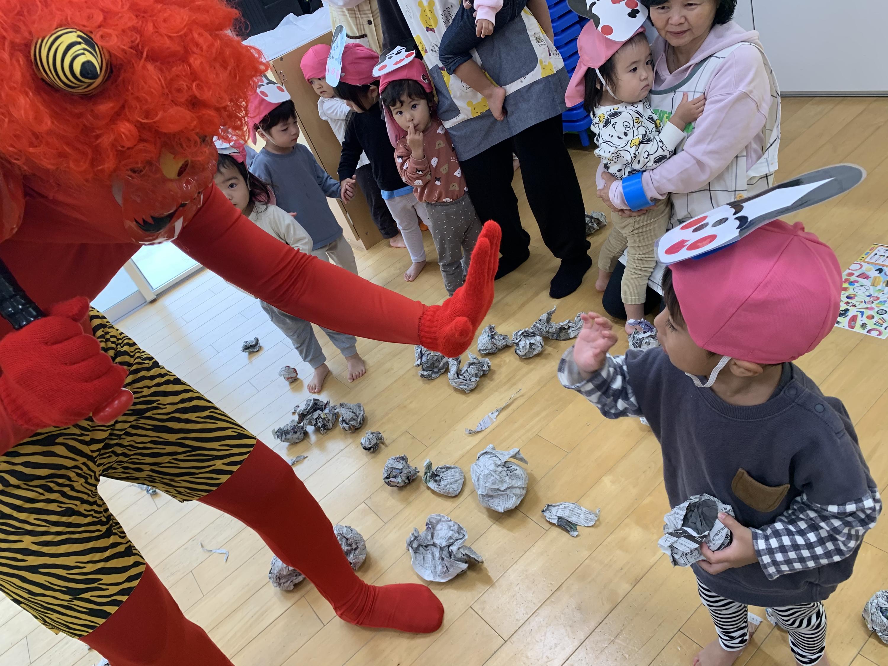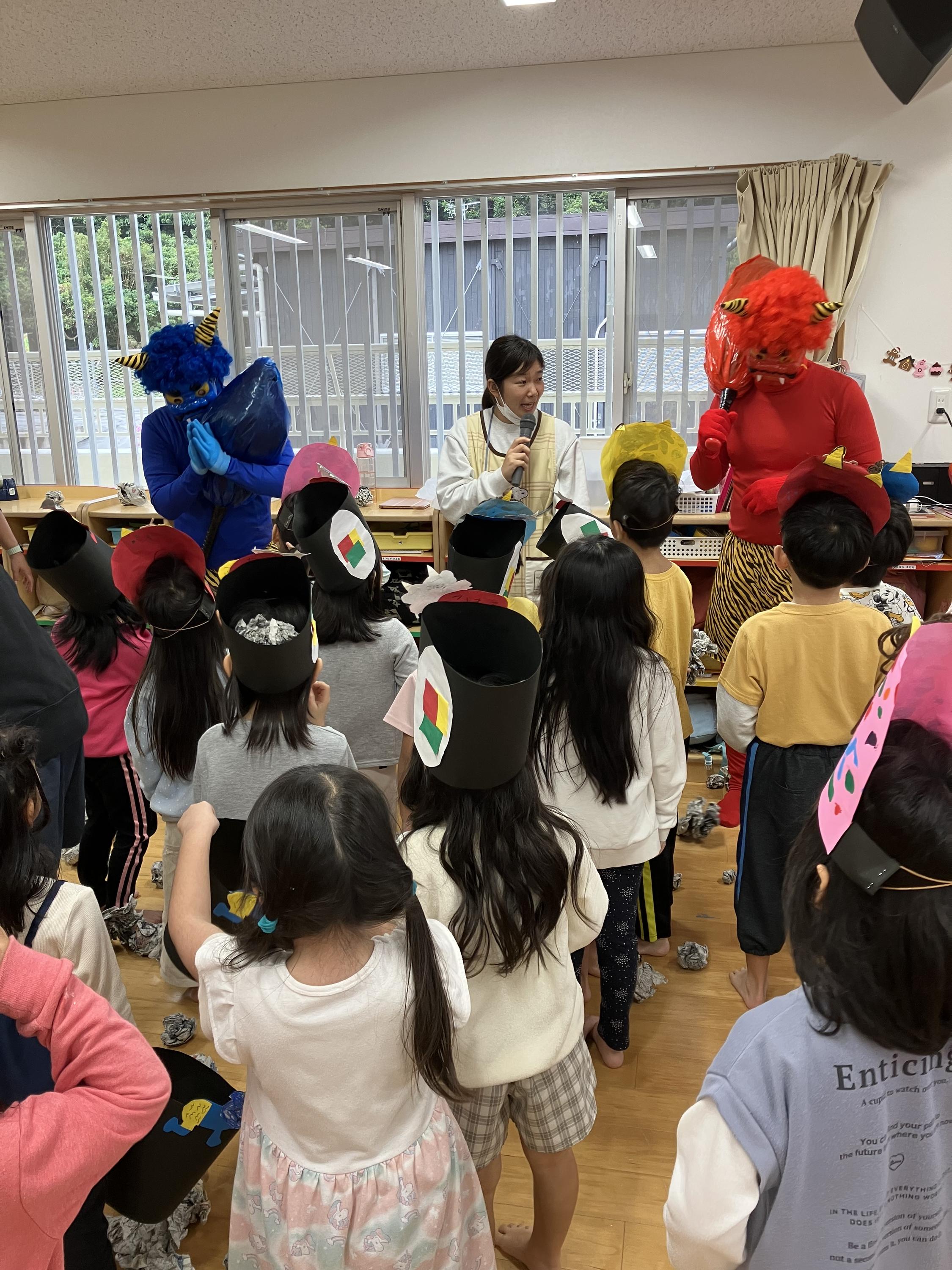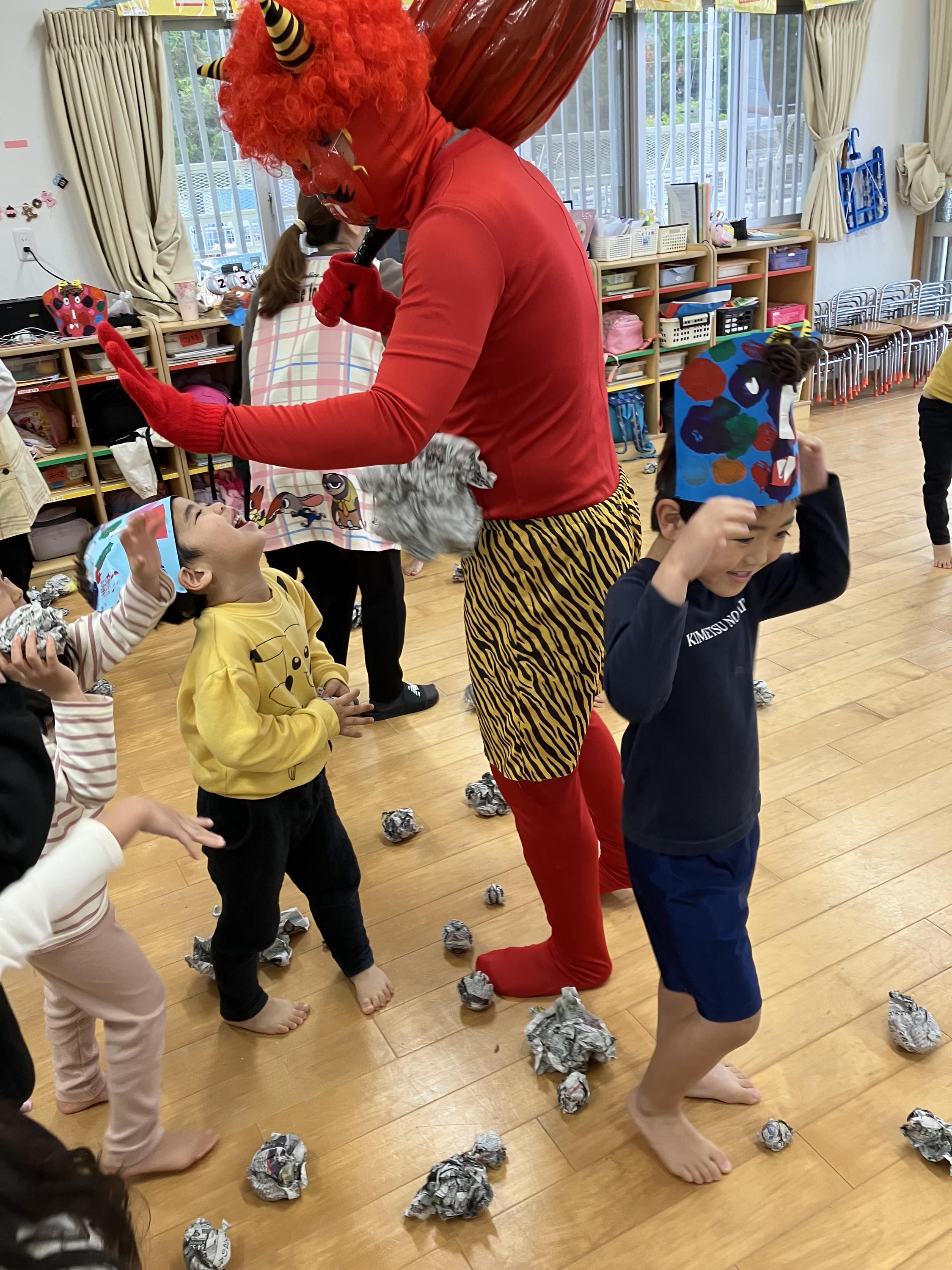 節分の由来などを学んでから♬まめまき♬のうたを元気よく歌っていると…