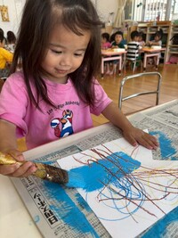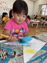 自分達で、筆をもって絵の具を塗ることが初めてだった子ども達。