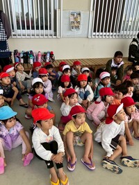 園庭へ移動して、こいのぼりがあがるのを見ました~。