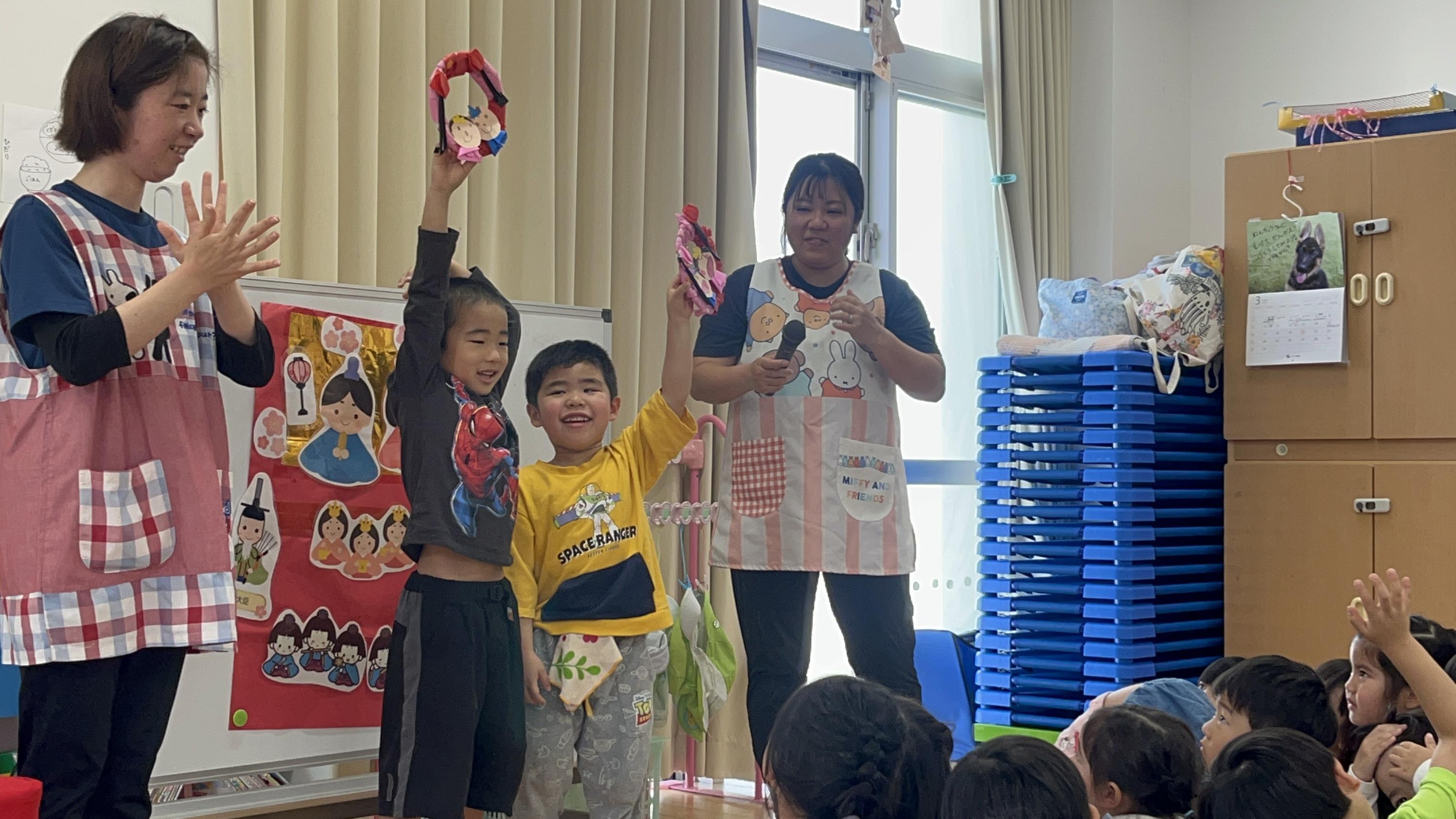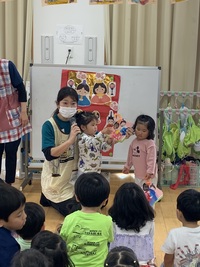 集会では、ひなまつりの由来やひな人形のそれぞれの役割を