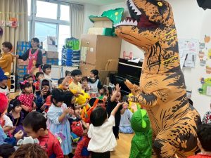 大きな恐竜に大喜びの子や、怖くて泣いちゃう子もいましたが、