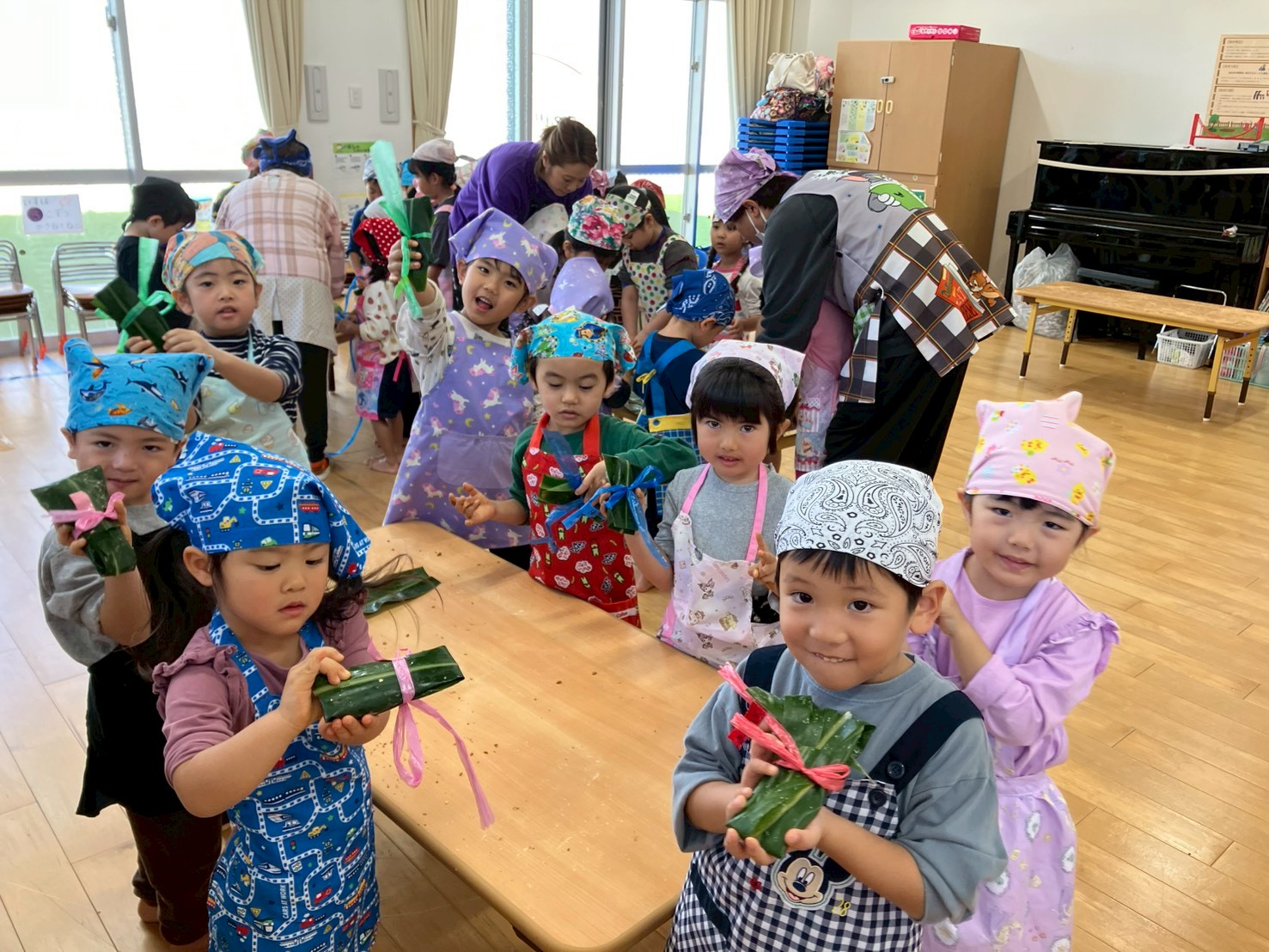 5歳児さんは各テーブルのリーダーとなり、年下のお友だちに優しく教える姿も見られました。