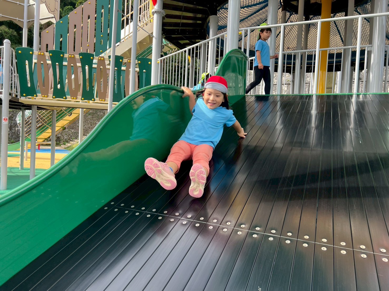 滑り台も良い笑顔で滑ってますね。