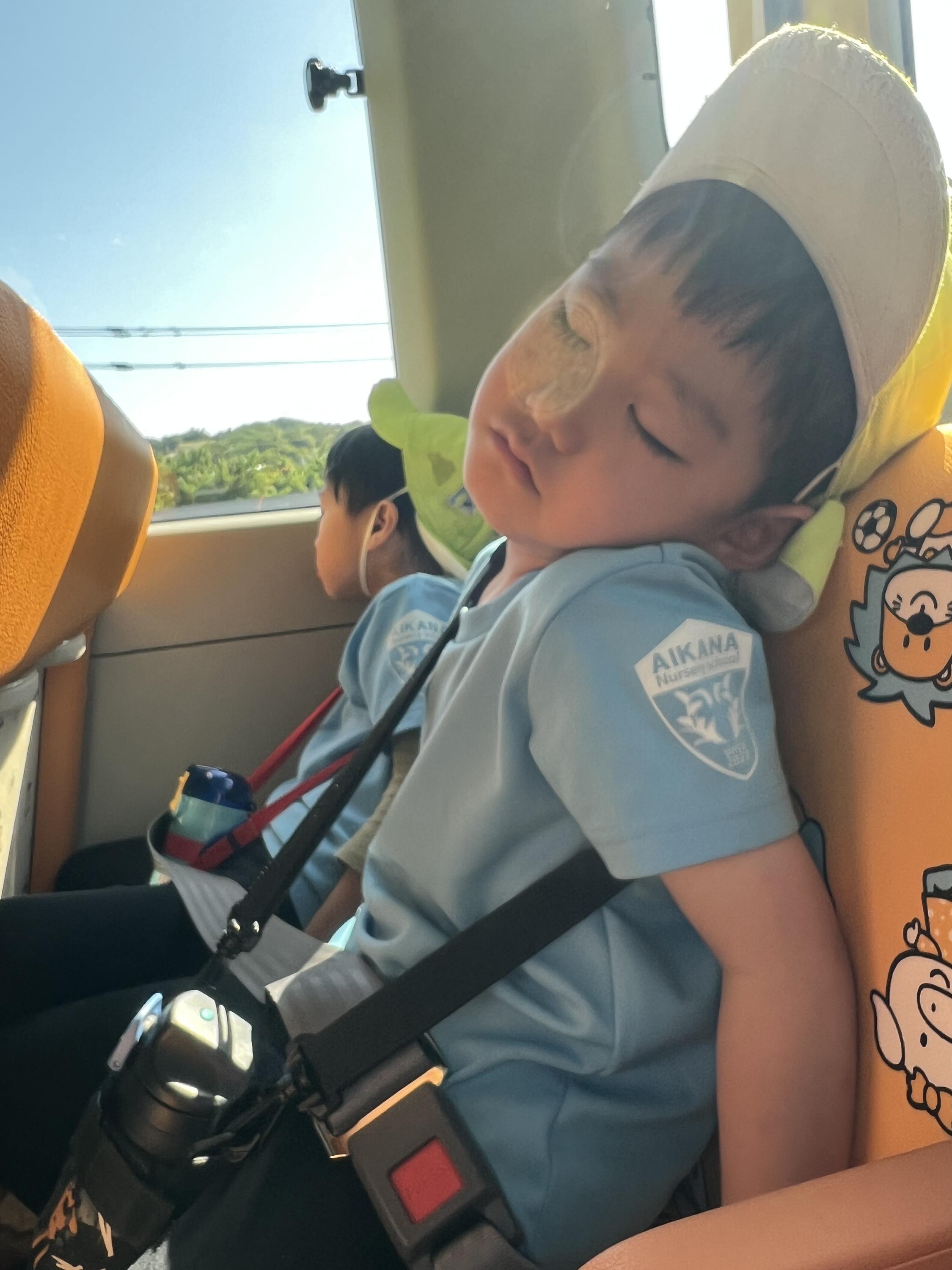沢山遊んだ後は 疲れてしまいバスの中でウトウト