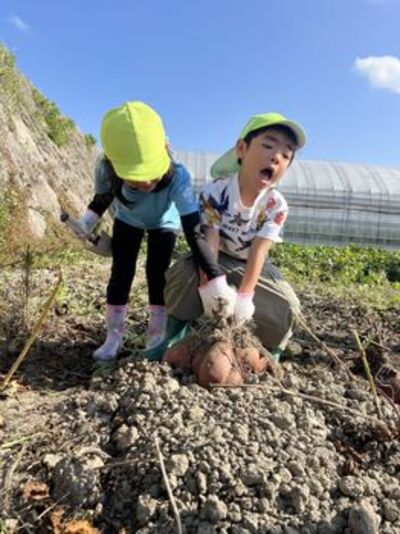 友だちの力を借りて見事、たくさんのお芋をgetしました。