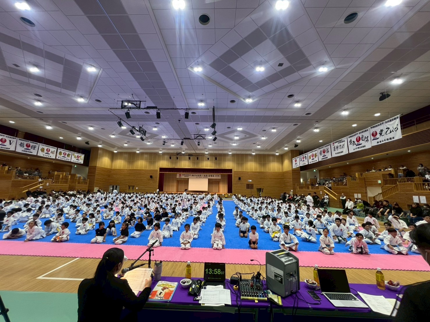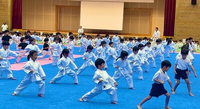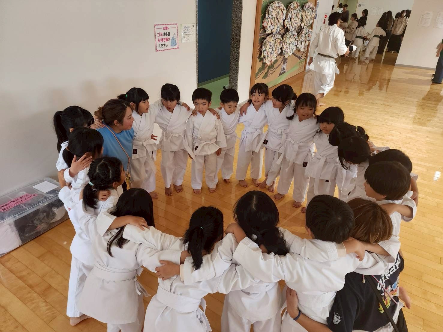 始まる前に円陣を組み、気合十分!!参加者が550名と多い中、幼児の部で「普及型Ⅰ」を披露してきました!!